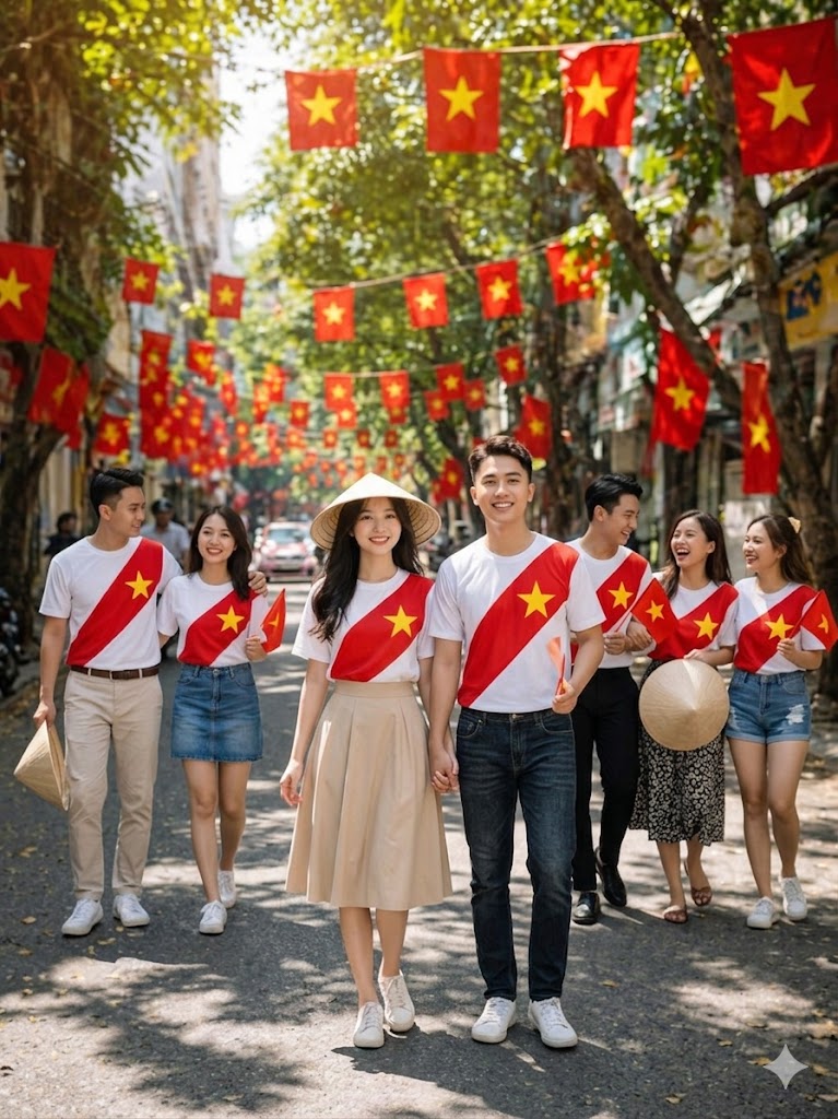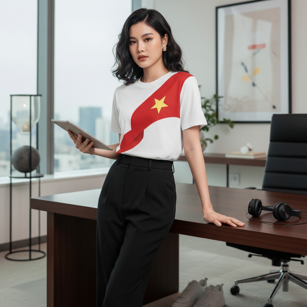 Lá cờ đỏ sao vàng là biểu tượng thiêng liêng của dân tộc Việt Nam. Khi được đưa vào thiết kế thời trang, hình ảnh ấy mang đến cảm xúc mạnh mẽ, truyền tải thông điệp tích cực và niềm tự hào dân tộc.