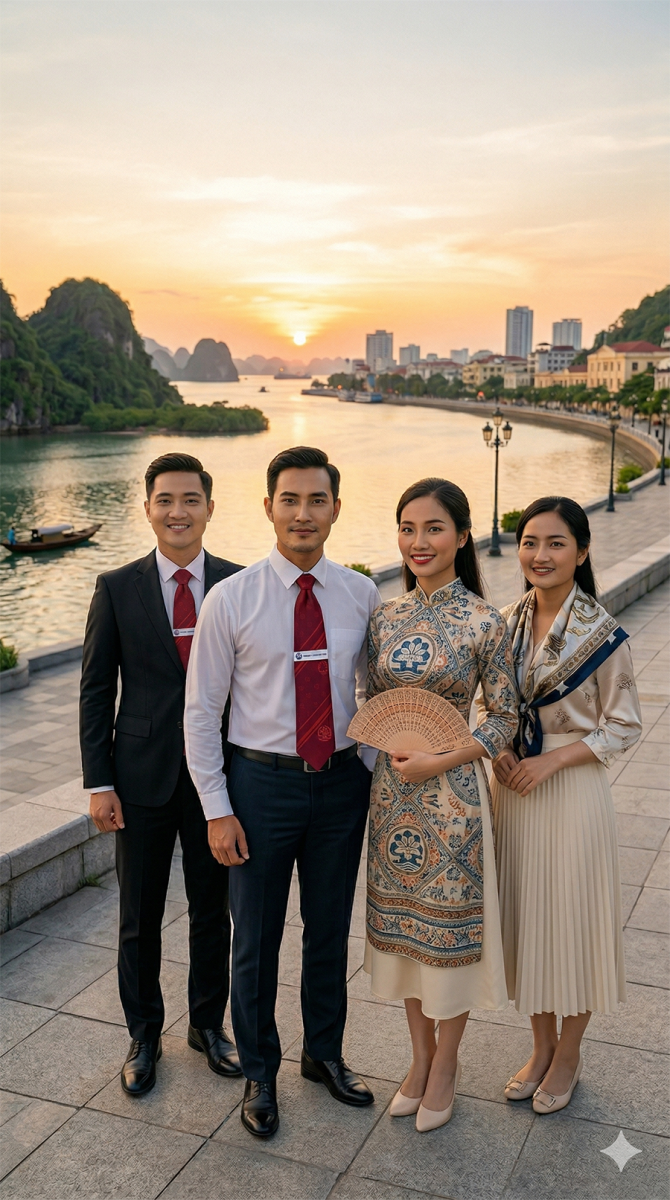 Hải Phòng không chỉ nổi tiếng với cảng biển lớn mà còn là nơi hội tụ tinh thần mạnh mẽ, cá tính và hiện đại. Một chiếc cà vạt dệt logo lấy cảm hứng từ thành phố này có thể: